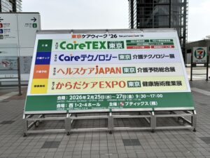 東京のビックサイトで開催されています、東京ケアウィーク’26に出展しています。弊社として、このようなイベントへの出展は初めてですので、色々と勉強になります。 会場は西4ホールです。